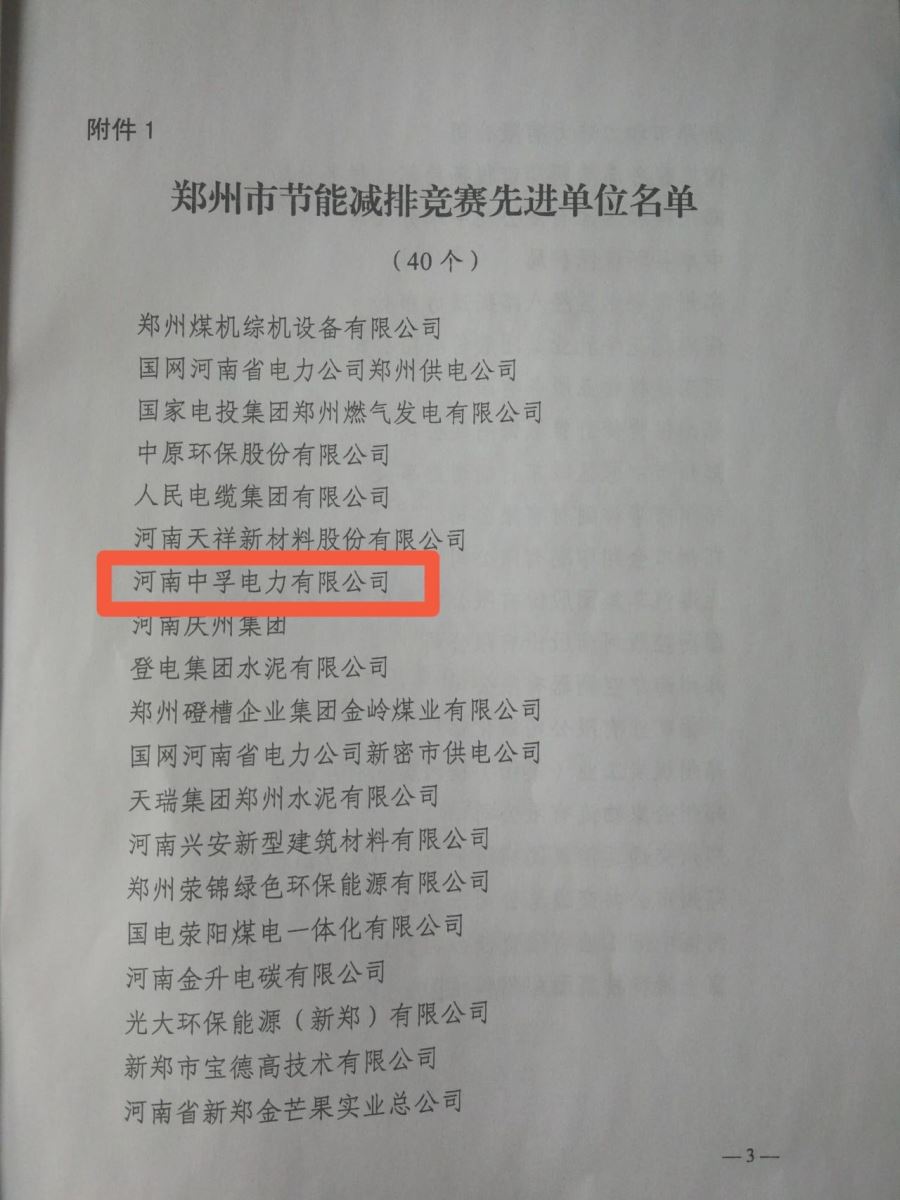 中孚電力公司被評(píng)為“鄭州市節(jié)能減排競(jìng)賽先進(jìn)單位”