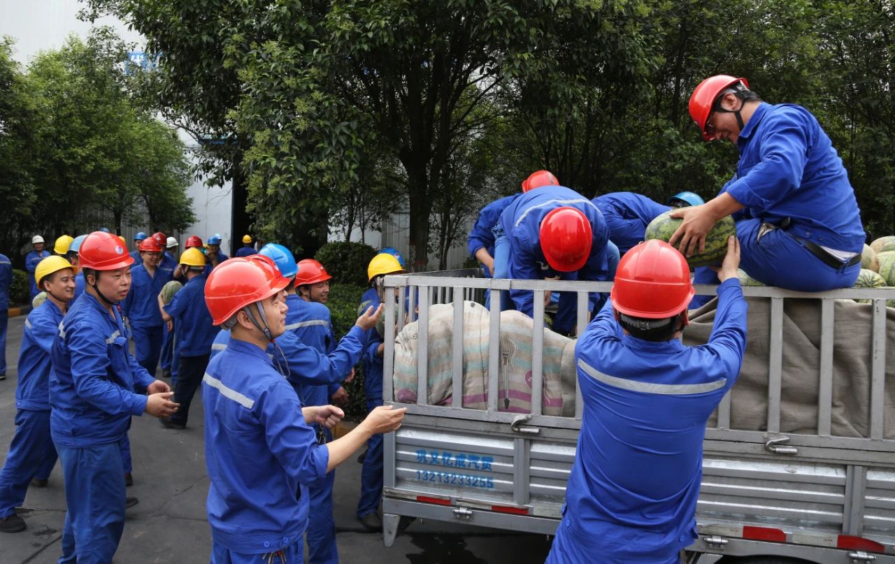 受集團(tuán)公司賀懷欽董事長委托,7月8日上午,中孚實(shí)業(yè)董事長崔紅松帶隊(duì),集團(tuán)公司部分班子成員、有關(guān)部門人員組成慰問組,分別到電力公司、高精鋁公司、鋁業(yè)公司、技術(shù)公司、炭素公司等十余家單位,送去16000斤西瓜、150件純凈水以及藿香正氣水、夏桑菊等防暑降溫用品,看望、慰問堅(jiān)守崗位的廣大一線員工。