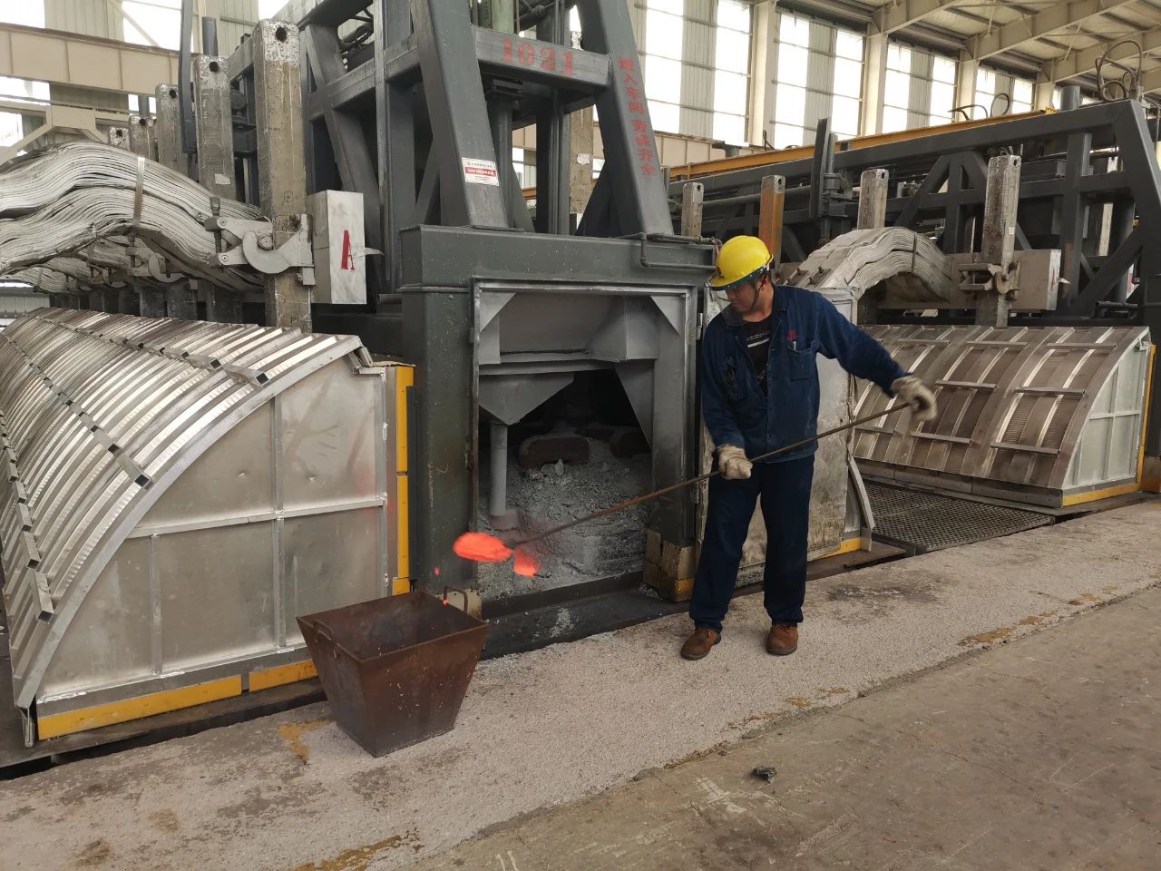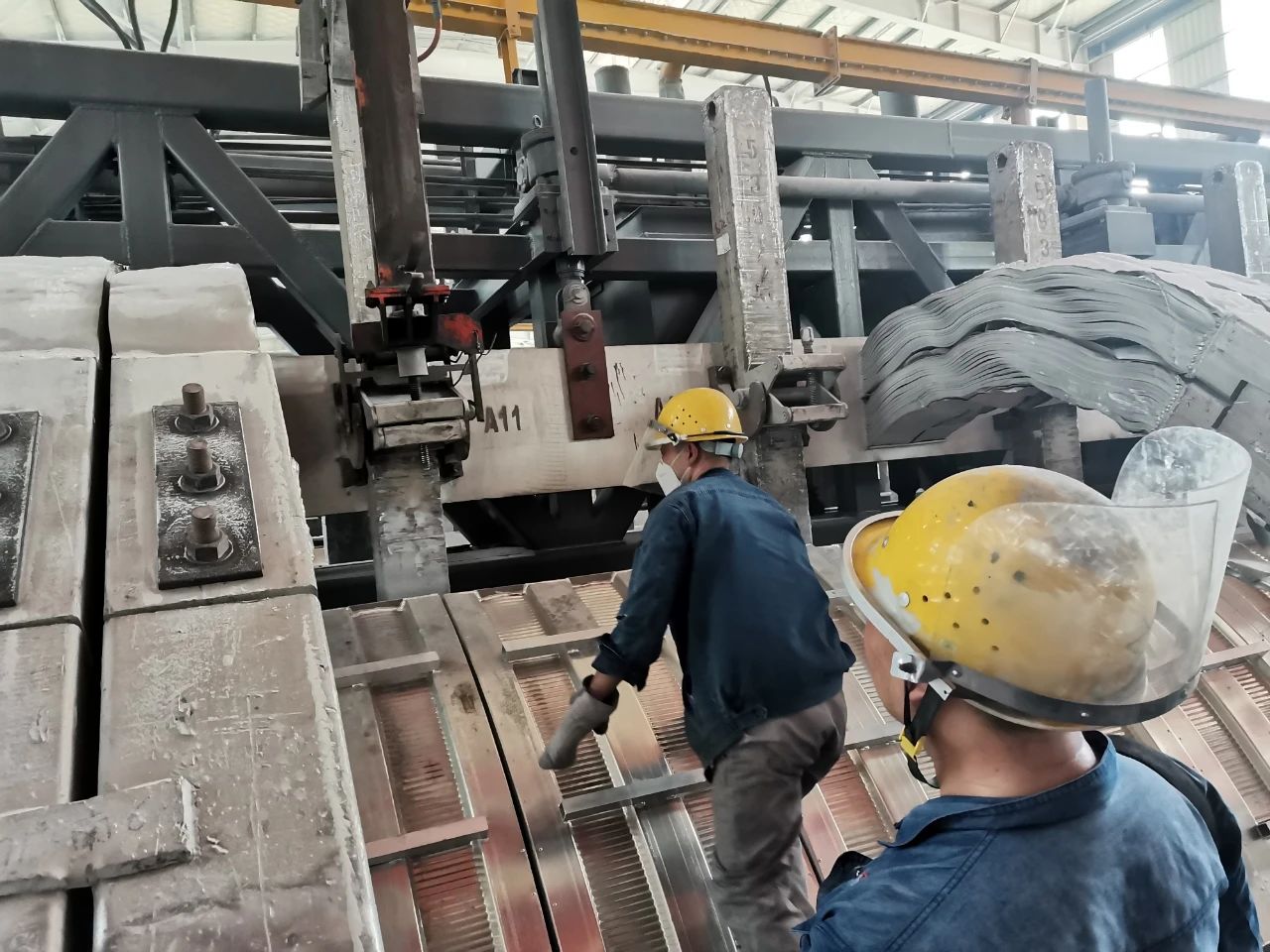 △ 換極前期準備,鋪設鐵皮防掉料