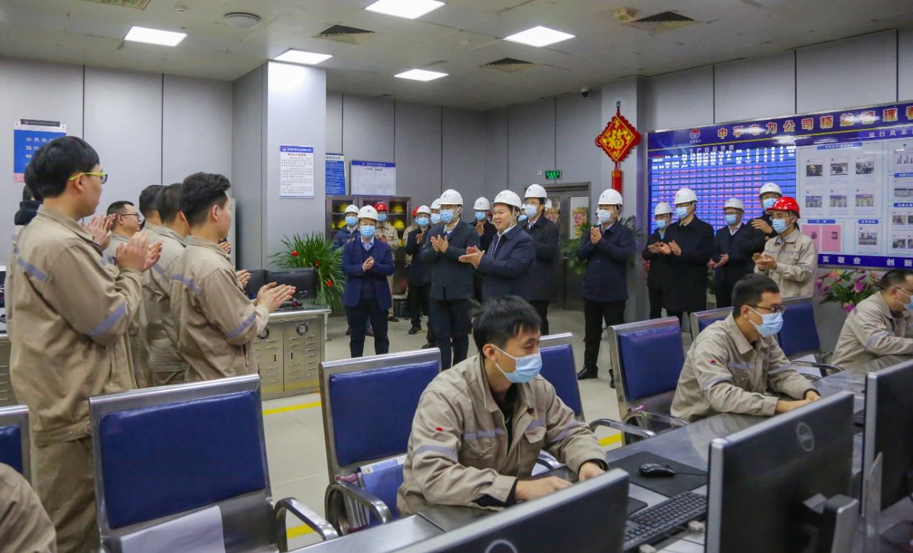 集團公司領導班子一行首先到電力公司集控室進行走訪慰問。電力公司在崗人員精神抖擻,充滿朝氣,生產現場處處洋溢著新春的氣息。在聽取了生產匯報后,賀懷欽董事長向大家致以新年的問候和祝福,并表示,電力公司嚴格管理,勇于創新,取得了卓越的業績,為集團公司發展作出了突出貢獻,春節期間,要擔負好整個園區的供電任務和鞏義城區的供熱任務,2021年要繼續保持良好的發展勢頭,為電力事業發展再譜新篇。