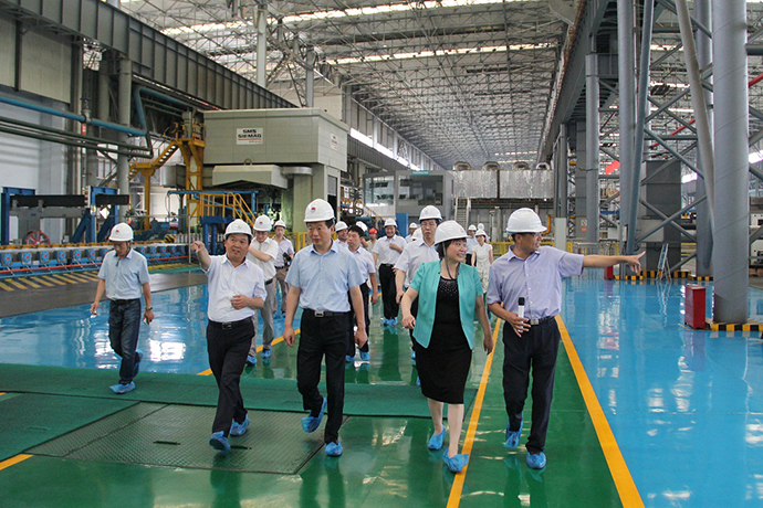 在豫聯(lián)工業(yè)園區(qū)觀景臺(tái),賀懷欽董事長(zhǎng)首先向王寶玉市長(zhǎng)一行介紹了豫聯(lián)工業(yè)園區(qū)的基本情況。隨后,王寶玉市長(zhǎng)查看了電力公司集控室、鋁業(yè)400KA生產(chǎn)線,并興致勃勃地深入轉(zhuǎn)型升級(jí)項(xiàng)目高精鋁公司生產(chǎn)現(xiàn)場(chǎng),重點(diǎn)考察了生產(chǎn)工藝流程、高端市場(chǎng)開發(fā)、鋁精深加工產(chǎn)品應(yīng)用情況。