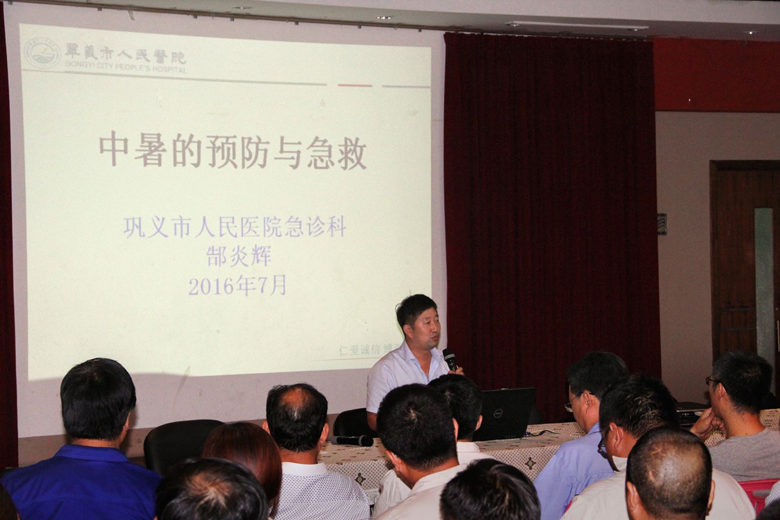 公司特別邀請了鞏義市人民醫院急診科主任郜炎輝來給大家進行培訓。郜炎輝主任通過PPT,圖文并茂地介紹了如何防暑、降溫以及中暑后的急救相關知識,進行了深入淺出地講解,深受公司員工的歡迎。