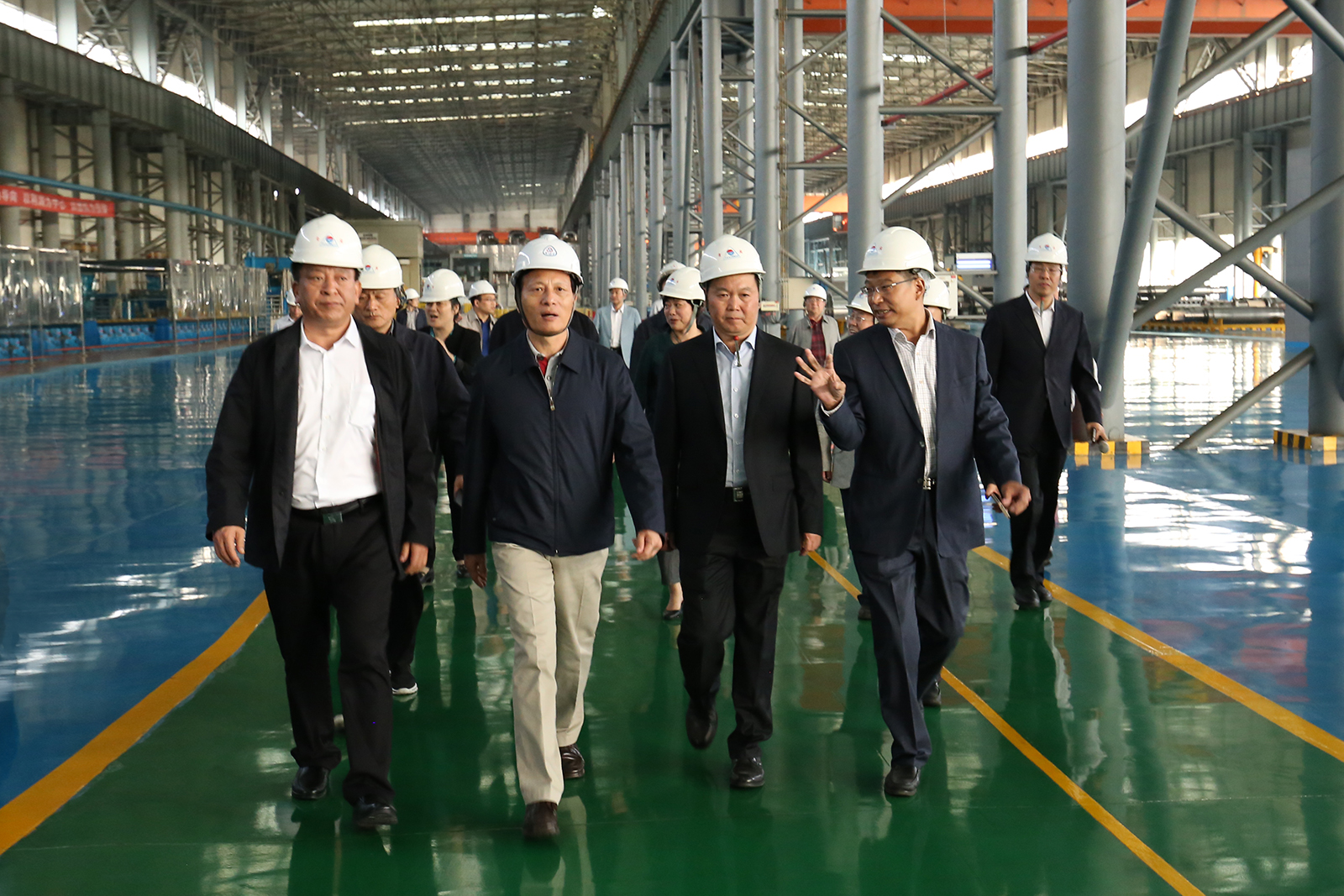 在熔鑄生產(chǎn)現(xiàn)場(chǎng),豫聯(lián)集團(tuán)賀懷欽董事長(zhǎng)首先向謝伏瞻書記簡(jiǎn)要匯報(bào)了高精鋁項(xiàng)目整體建設(shè)和投產(chǎn)情況。近年來,豫聯(lián)集團(tuán)瞄準(zhǔn)市場(chǎng)前沿,積極調(diào)整優(yōu)化產(chǎn)業(yè)結(jié)構(gòu),著力加快轉(zhuǎn)型升級(jí)步伐。高精鋁項(xiàng)目定位于“國(guó)際一流、國(guó)內(nèi)領(lǐng)先”的建設(shè)目標(biāo),目前已建成投產(chǎn),產(chǎn)品獲得了中國(guó)船級(jí)社、美國(guó)船級(jí)社、英國(guó)船級(jí)社、挪威船級(jí)社產(chǎn)品準(zhǔn)入認(rèn)證和TS16949汽車板認(rèn)證。高檔鋁箔坯料、罐體、罐蓋料、汽車板、艦船板等高性能合金板材一系列高附加值產(chǎn)品已在國(guó)內(nèi)外廣泛銷售,成為了公司參與國(guó)際市場(chǎng)的嶄新核心競(jìng)爭(zhēng)力。謝伏瞻書記面帶微笑,頻頻點(diǎn)頭,表示肯定,祝愿該項(xiàng)目早日全部達(dá)產(chǎn)取得更大的經(jīng)濟(jì)效益。