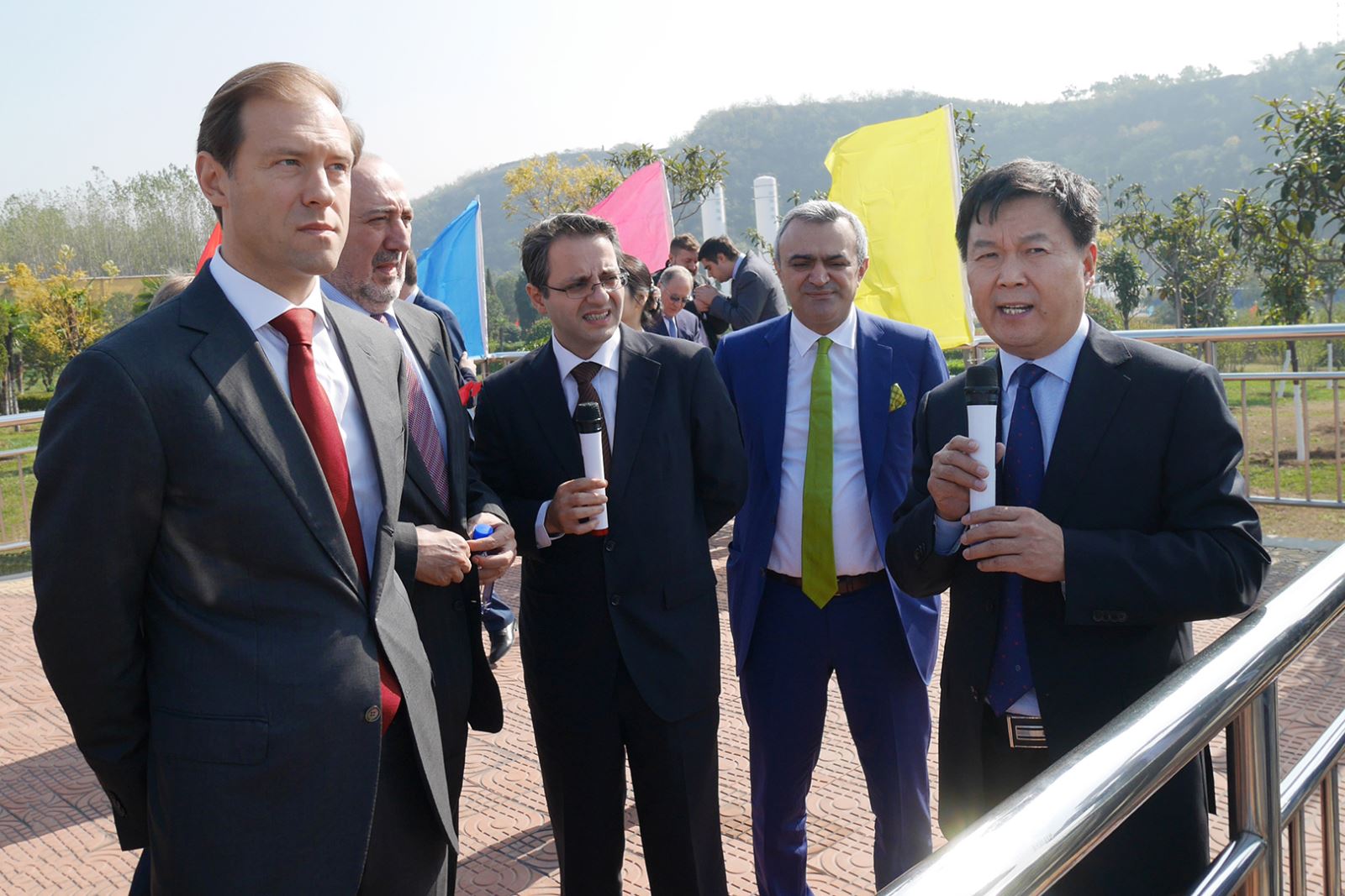豫聯(lián)集團董事長賀懷欽向俄羅斯工業(yè)和貿(mào)易部部長曼圖羅夫先生介紹企業(yè)轉(zhuǎn)型升級情況