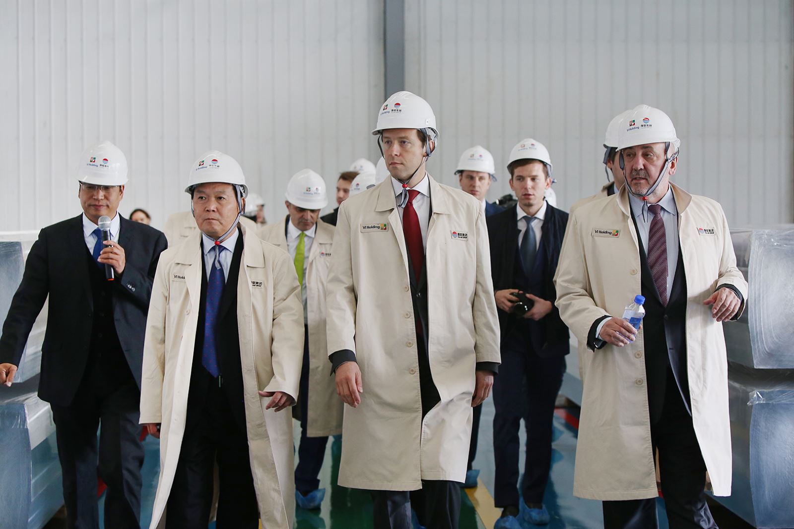 俄羅斯工業(yè)和貿(mào)易部部長曼圖羅夫先生、Vi Holding公司總裁維塔利•馬欽斯基先生參觀豫聯(lián)集團高精鋁生產(chǎn)線