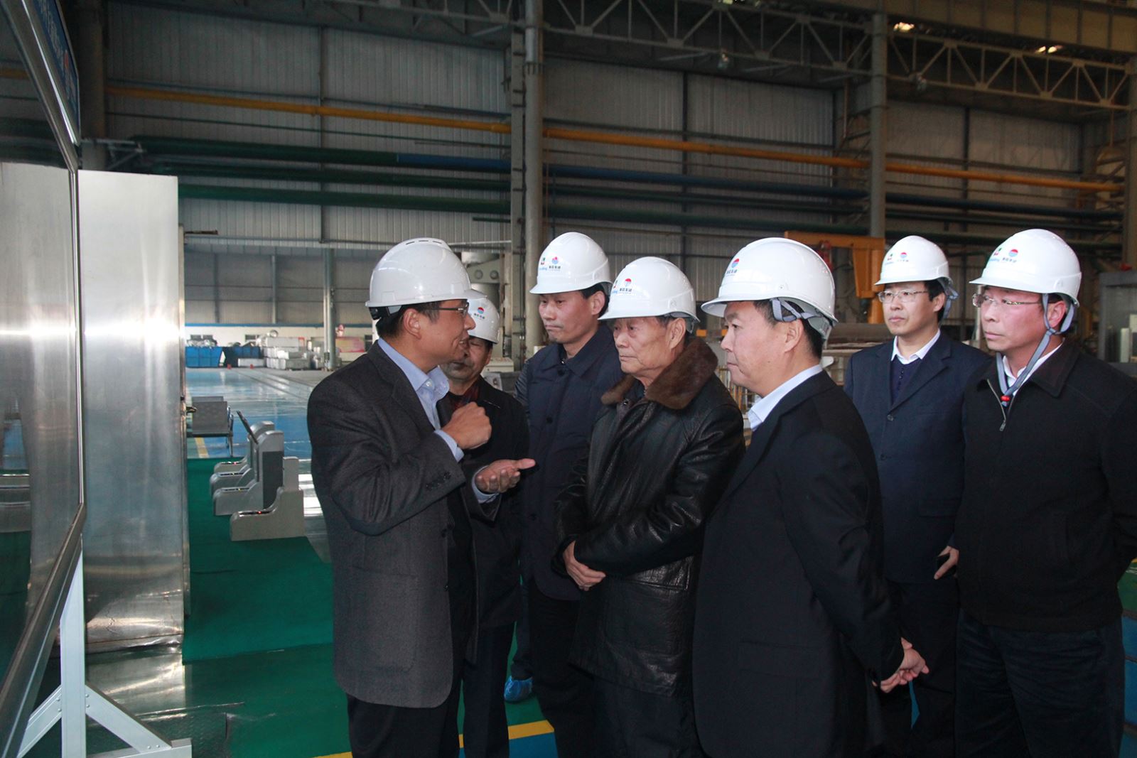 在豫聯工業園區觀景臺,范欽臣主席首先觀看了企業整體產業布局,賀懷欽董事長簡要介紹了企業近幾年來轉型升級情況和取得的成效。隨后,范欽臣主席深入轉型升級項目高精鋁公司生產一線,興致勃勃地先后察看了熔鑄、熱軋、冷軋、精整生產線,仔細詢問了生產經營及市場開發情況。高精鋁公司負責人詳細介紹了項目建設、設備運行、生產安排、技術創新、高端產品開發及市場營銷情況。范欽臣主席對豫聯集團轉型升級取得的顯著成效給予充分肯定,同時強調指出,豫聯集團要瞄準航空、航天等高端市場,發揮“國際一流、國內領先”的裝備優勢和人才技術優勢,持續不斷地開發鋁精深加工產品,加快占領國內外高端市場,提高產品附加值,在河南建設先進制造業大省進程中起到更有力的骨干帶動作用。
