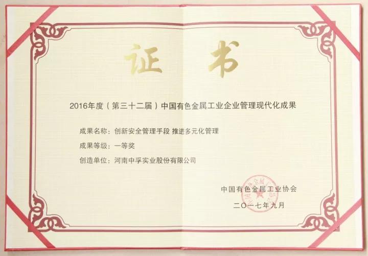 豫聯(lián)集團、中孚實業(yè)喜獲四項中國有色工業(yè)企業(yè)管理現(xiàn)代化成果獎