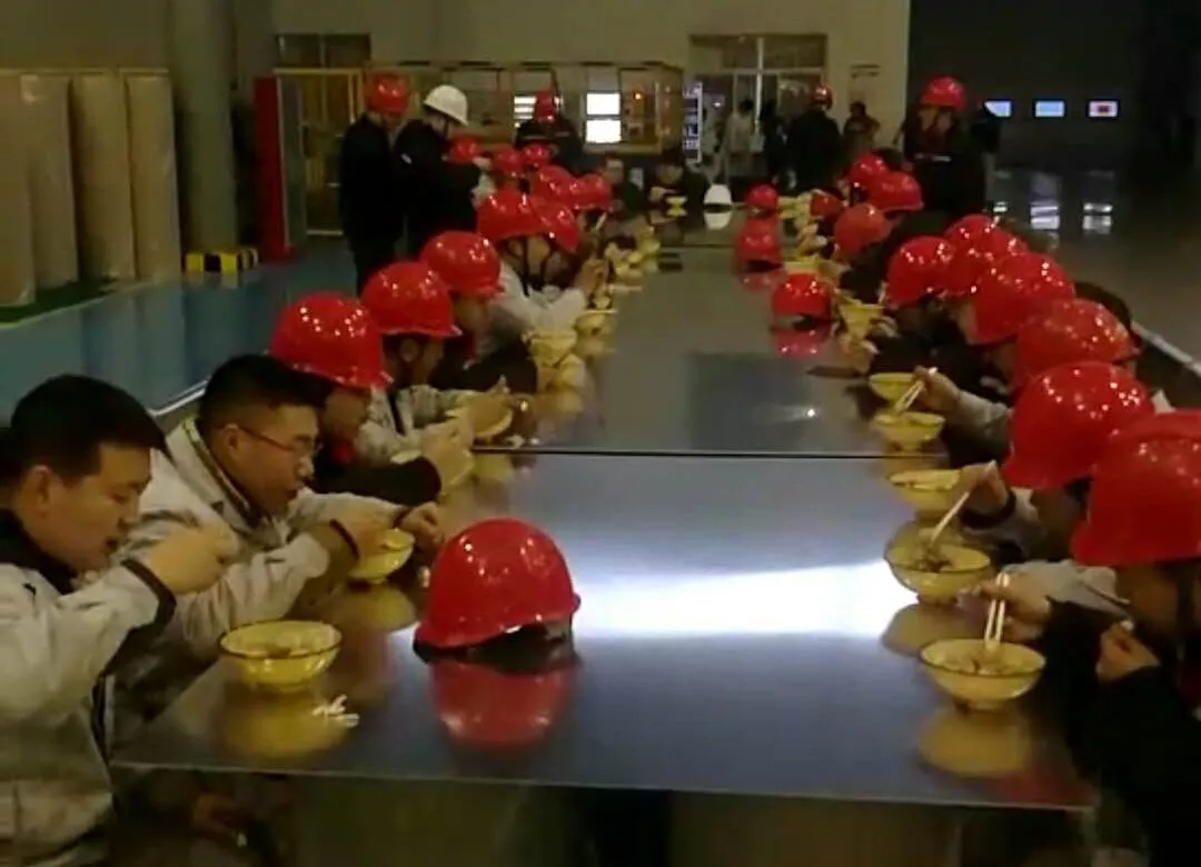 除夕晚上,忙碌了一天的員工們,與高精鋁領導、分廠經理圍坐在一起,吃著熱騰騰的餃子。