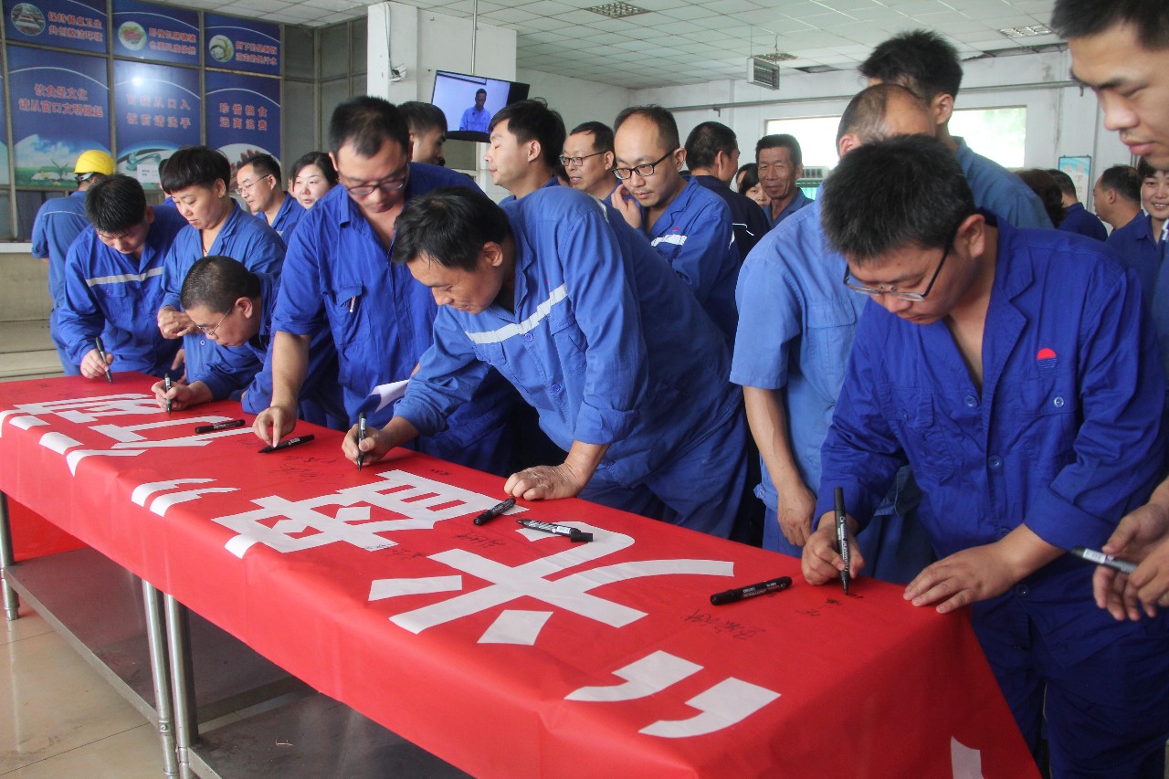 “讓我們積極行動,從現在做起、從點滴做起,養成良好的節儉習慣,形成崇尚節儉的道德風尚,自覺做勤儉節約的傳播者、實踐者、示范者……”7月9日,中孚炭素公司80余名干部員工共同進行了“厲行節約、反對浪費”的莊嚴承諾,并在“加入‘光盤’行動,節約從我做起”的宣傳橫幅上簽下了自己的名字。