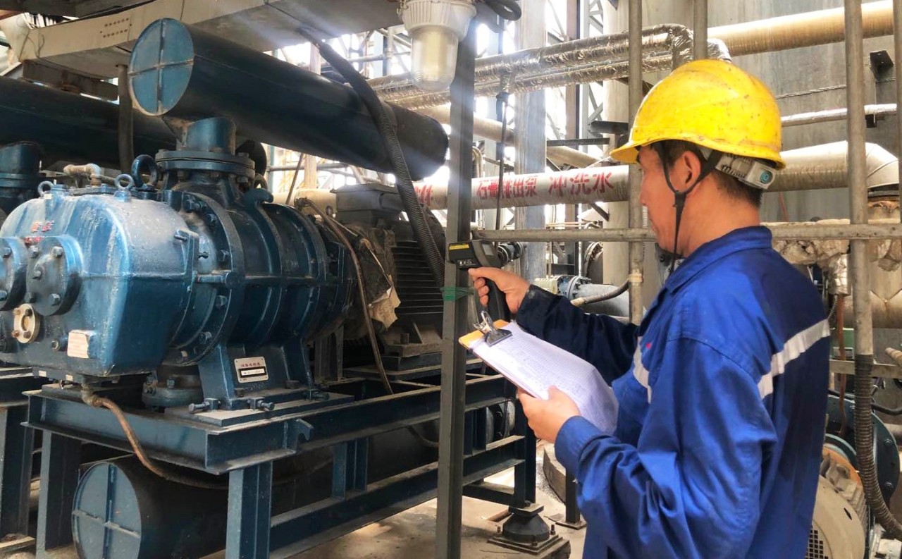 10月1日10時,煅燒車間脫硫崗位,主值薄云山正在查看設備運行情況。對重點設備的重點部位,他每隔一小時就要進行一次全面巡檢,觀察并記錄運行狀態數據,據此判斷設備是否有發生故障的趨勢,將設備故障消除在萌芽狀態,確保設備長周期安全平穩運行。