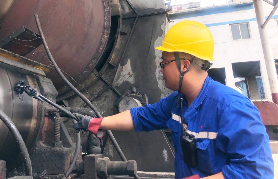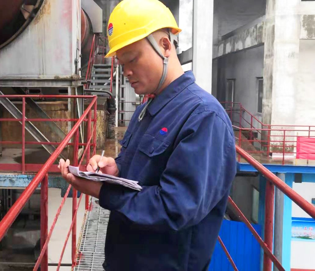 10月5日8時30分,回轉窯崗位,煅燒工范標利用早上交接班前的時間,再次仔細檢查設備運行情況。對待工作,范標始終兢兢業業,每天,他都提前半小時到崗。需要巡檢的設備多,工作繁瑣,但范標沉著穩重,每項工作都處理得井井有條。