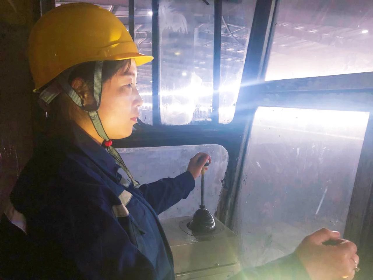 10月6日17時,天車崗位,天車工閆微納最后一個下班。當天工作量比較大,大家忙而不亂,共同做好石油焦入庫和上料工作。