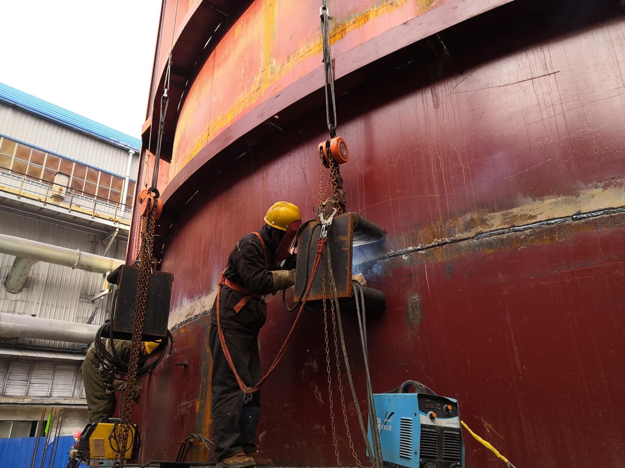 安裝隊進場后,韓劍英主要負責吸收塔安裝工作。安裝初期,受磁場影響,所有環焊縫均無法焊接,吸收塔無法起層。為解決此問題,韓劍英查閱了相關資料,結合實際設計制作了消磁裝置,多次試驗并不斷改良后,最終成功制作出了有效的消磁器,解決了磁場干擾問題,焊接工作順利進行,目前吸收塔安裝工作有條不紊推進中。