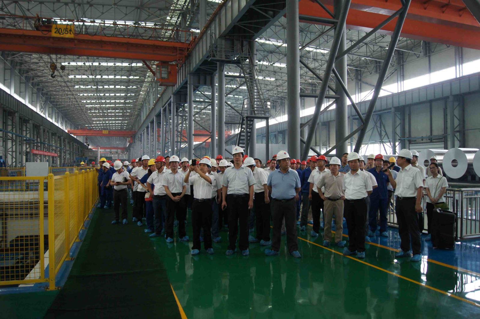 當天上午,在總部9樓會議室,集團公司召開了由領導班子、分子公司主要負責人及機關部門經理參加的班子擴大會。對照年初制定的目標任務,11個單位先后對上半年工作進行了全面總結,明確了下半年的目標任務和重點工作。當天下午,在張洪恩董事長帶領下,200多名參會人員共同參觀了高精鋁項目生產和建設現場。大家冒著酷暑,仔細觀看了“國際一流、國內領先”的高端鋁合金新材料生產線的每道工序。當看到冷軋雙機架火熱的試運場景時,大家感到無比震撼,都為企業取得的轉型升級重大成果感到驕傲和自豪,對企業未來充滿信心。