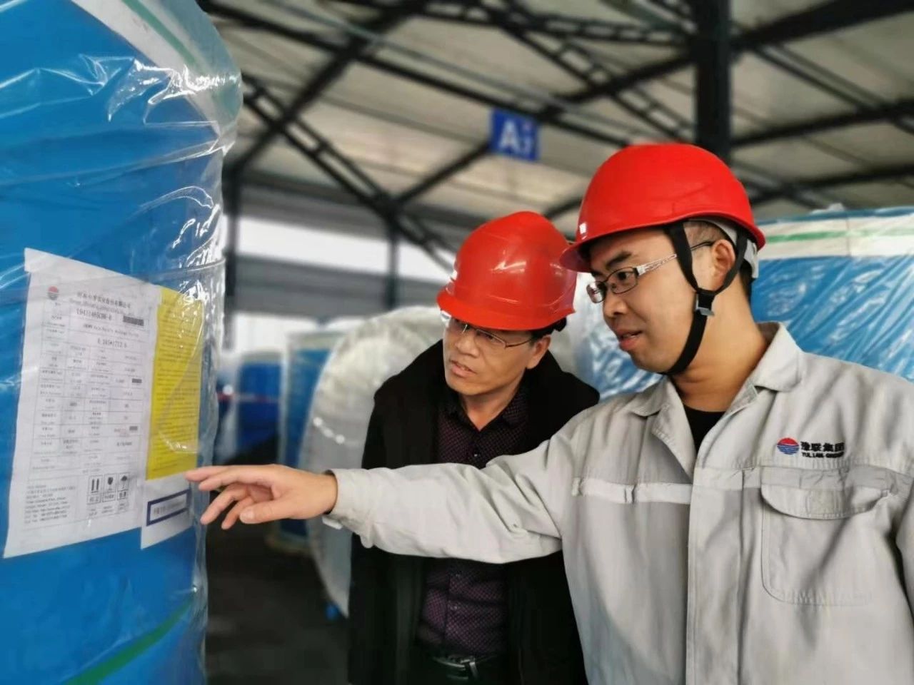 吳衛國(右)與業務人員確認發貨信息